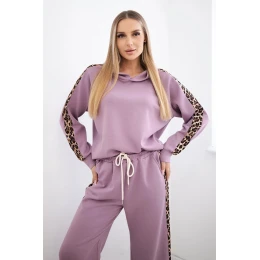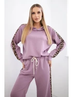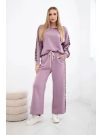 Dámská souprava z pruhované viskózy s dlouhým rukávem a legínami tmavě pudrově růžová