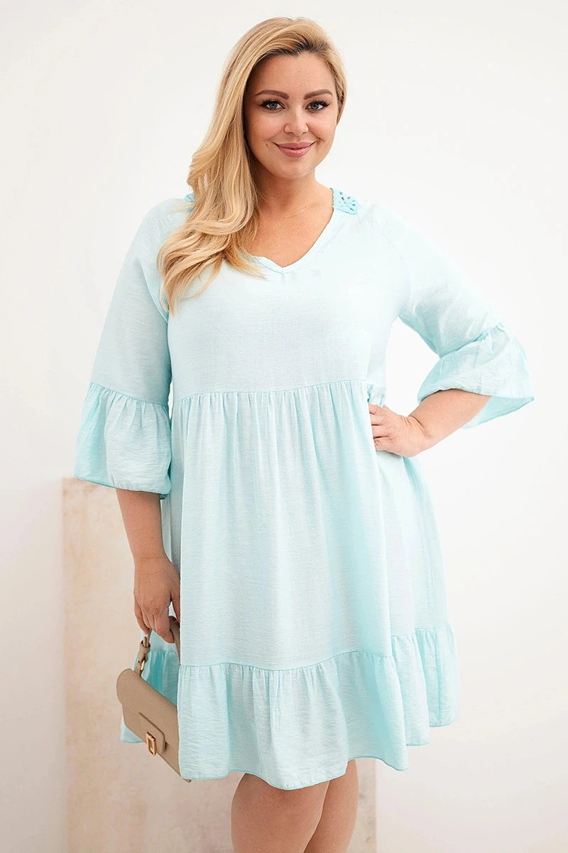 Viskózové dámské šaty Plus Size s ažurovým zdobením mentolová