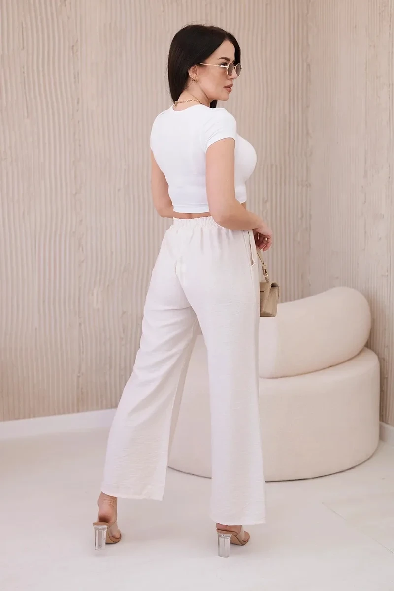 Široké viskózové kalhoty jsou jedinečným kouskem oblečení, který kombinuje pohodlí a eleganci. Tyto kalhoty vyrobené z lehkého a vzdušného viskózového materiálu zaručují nejen svobodu pohybu, ale také vám udrží pocit lehkosti a svěžesti po celý den. Široká nohavice dodává kalhotám charakteristický, volný střih, který je módní i pohodlný. Díky tomuto prvku vypadají kalhoty mimořádně stylově a působivě a dodává originalitu každému stylu. Univerzální design širokých kalhot je předurčuje pro různé příležitosti a styly. Můžete je nosit jak ke každodennímu ležérnímu outfitu, tak k elegantnějším soupravám na pracovní schůzky nebo večerní výlety. Široké viskózové kalhoty jsou perfektní volbou pro ženy, které oceňují pohodlí a styl. Díky univerzálnímu designu a kvalitnímu zpracování jsou tyto kalhoty nenahraditelným kouskem šatníku, který skvěle doplní každou kolekci oblečení. Velikost je univerzální a bude vhodná pro ženy, které nosí velikost S, M nebo L.