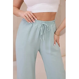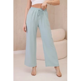 Viskózové kalhoty se širokými nohavicemi tmavá máta