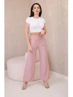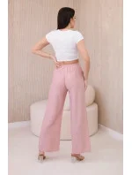 Viskózové kalhoty se širokými nohavicemi tmavě pudrově růžová