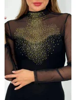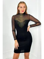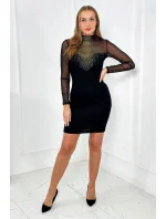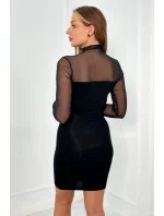 Pletené šaty s tylovými rukávy a výstřihem černý