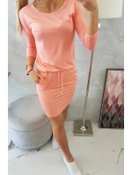 Viskózové šaty s vázáním v pase v meruňkové barvě
