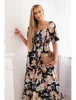 Viskózové šaty s volánkovým výstřihem 29477 černé - Kesi