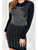 Pletené šaty se stříbrným zirkonovým motivem černá