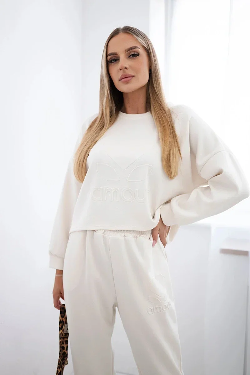Viskózový komplet Amour teplákové + kalhoty světle béžová