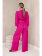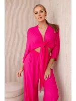 Viskózový komplet, dole zavazovaná halenka + kalhoty růžový