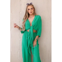 Viskózový komplet, dole zavazovaná halenka + kalhoty zelený
