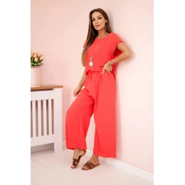 Viskózový komplet plisovaná halenka + kalhoty malina
