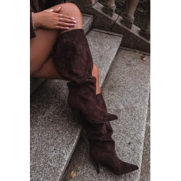 Vklouzávací dámské kozačky na jehlovém podpatku z eko semiše čokoládové Noretta