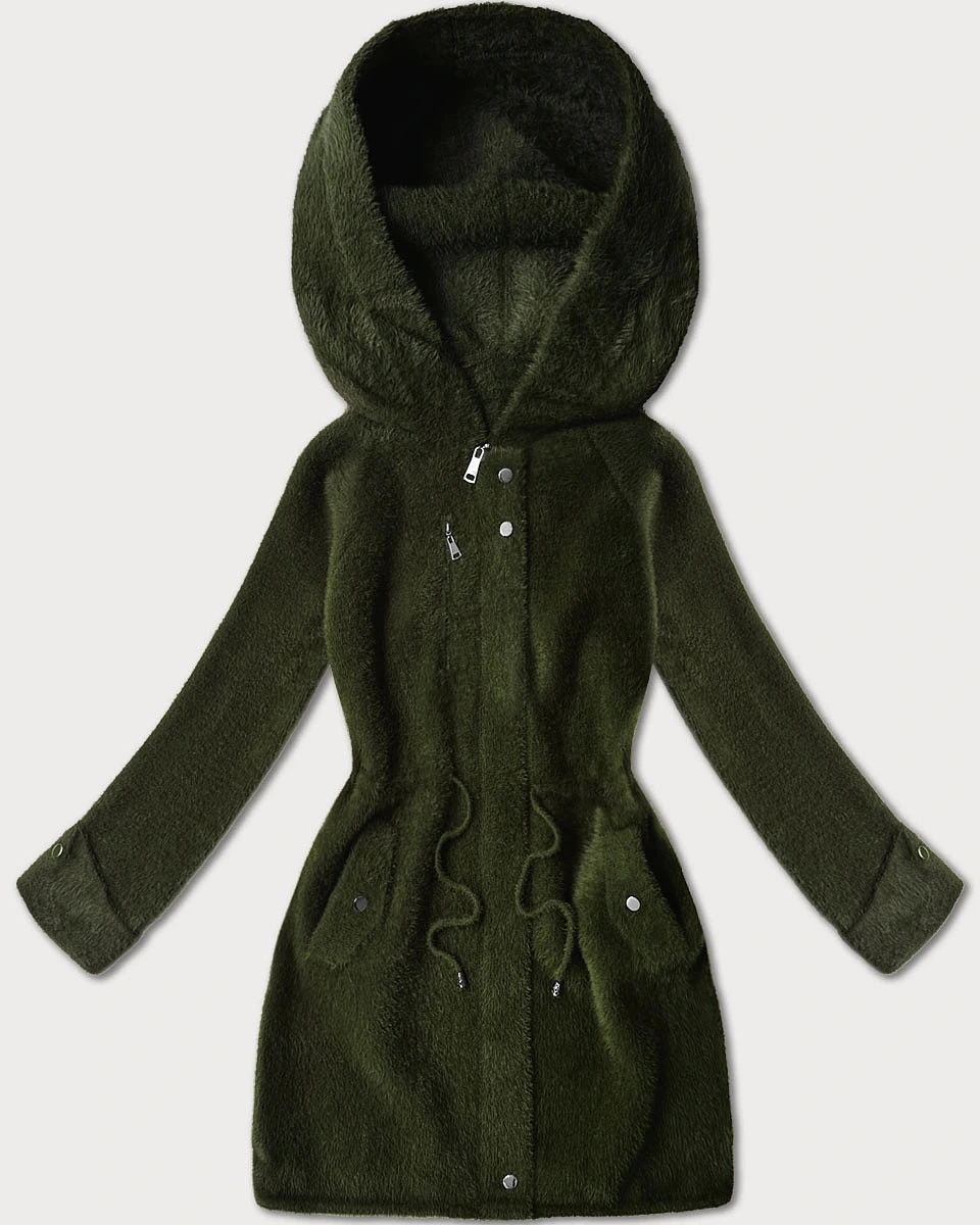 Vlněná bunda z alpaky s kapucí army (W214#)