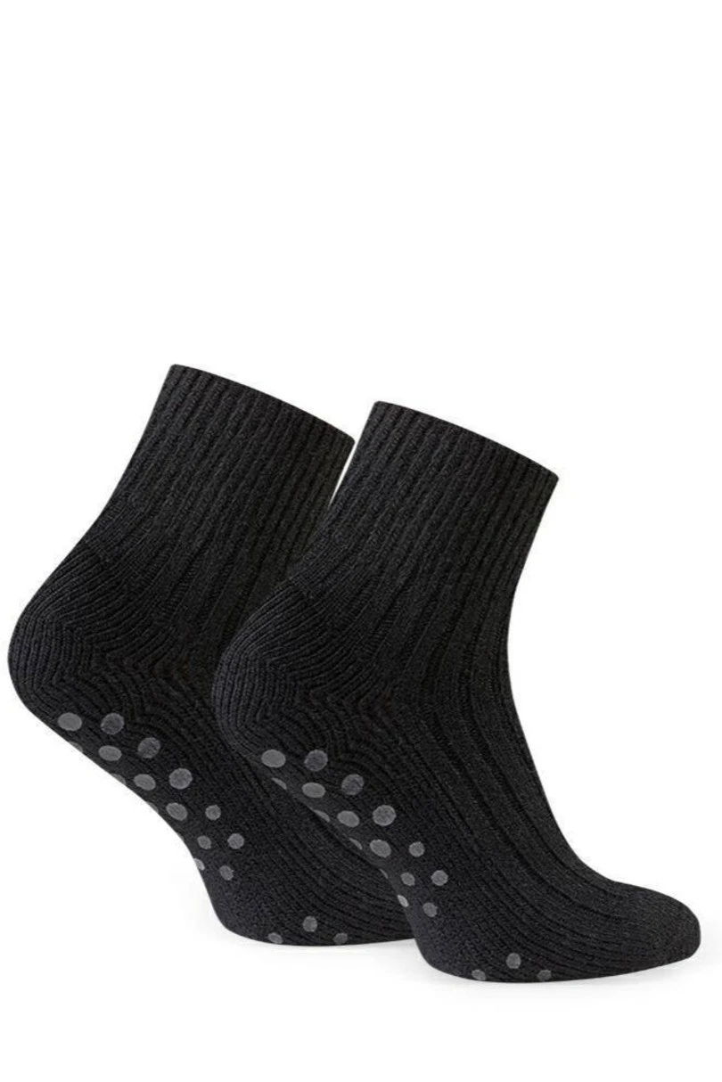 Vlněné ponožky 189 ABS jsou dokonalou kombinací tepelného komfortu, bezpečnosti a pohodlí při nošení v chladnějších dnech. Jsou vyrobeny z vysoce kvalitní vlny (69 %) s přídavkem polyamidu a elastanu a zaručují teplo, pružnost a odolnost. Bezešvé spojení chrání před odřením a měkké froté na spodní části ponožek dále izoluje od chladné země. Protiskluzová podešev ABS zvyšuje stabilitu, takže tyto ponožky jsou ideální volbou pro seniory a pro domácí použití. Jsou ideální pro podzimní a zimní období jako teplé a bezpečné ponožky pro chůzi kolem domu.