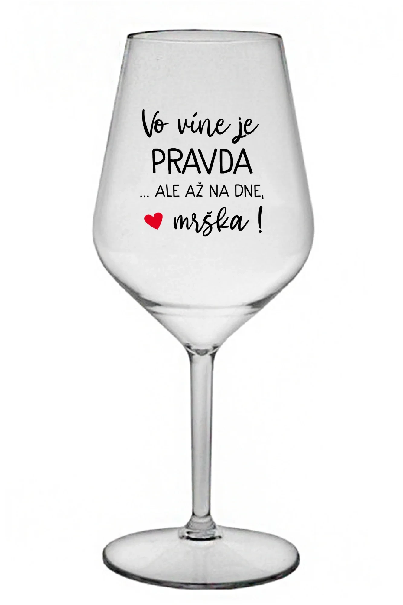 VO VÍNE JE PRAVDA...ALE AŽ NA DNE, MRŠKA! - priehľadný nerozbitný pohár na víno 470 ml