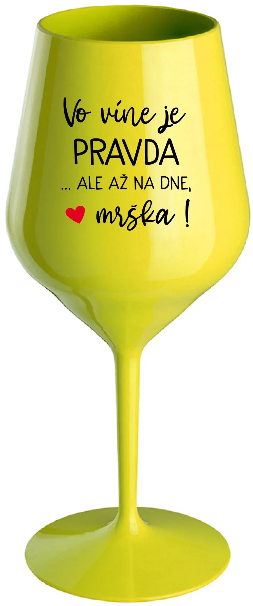 VO VÍNE JE PRAVDA...ALE AŽ NA DNE, MRŠKA! - žltý nerozbitný pohár na víno 470 ml