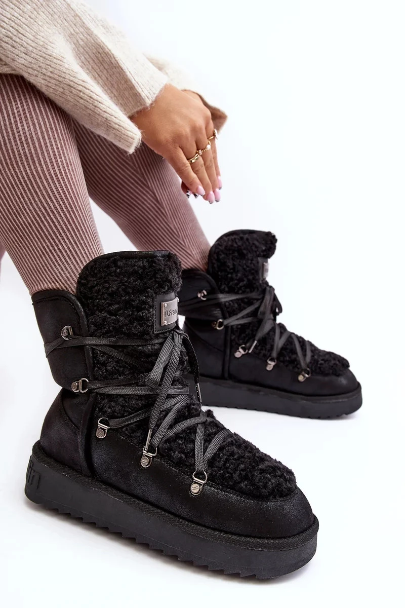 Dámské sněhule vyrobené z vysoce kvalitní voděodolné tkaniny z mikrovlákna. Nasazeno na silné, protiskluzové podrážce. Vnitřní a přední část jsou zateplené syntetickou kožešinou. Tento model je určen pro nejmrazivější dny. Sněhule jsou nazouvací s přídavným zavazováním. Veganské.Při výběru velikosti se řiďte tabulkou velikostí.