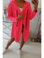 Volná bunda s kapucí růžová neonová