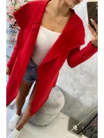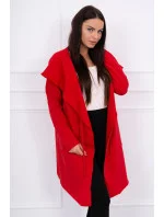 Volná bunda s kapucí v červené barvě