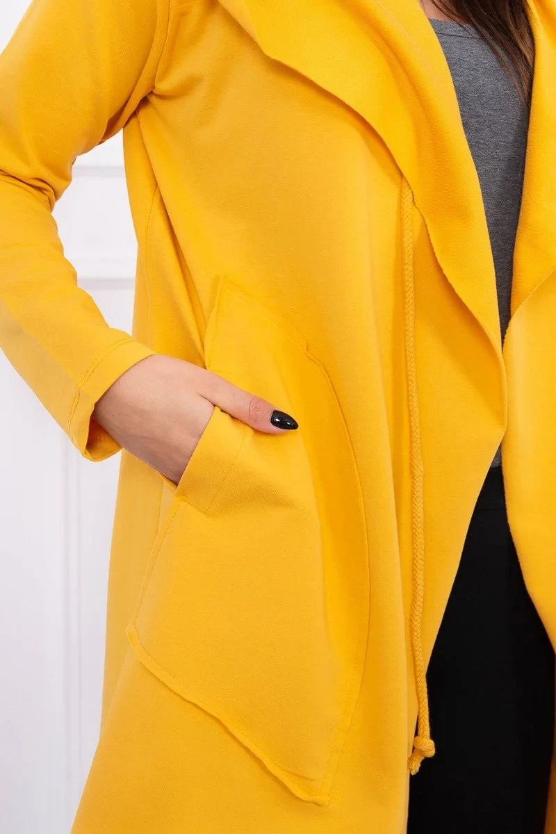 Volná bunda s kapucí v hořčicové barvě