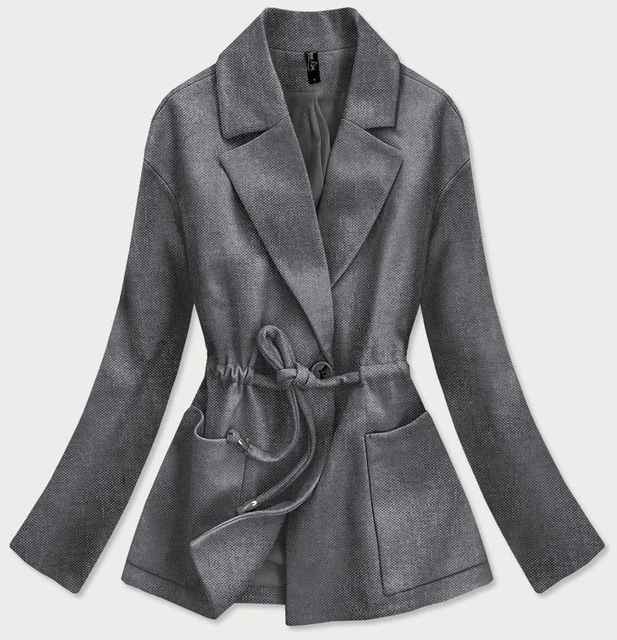 Volný krátký dámský kabát v grafitové barvě (2727)
