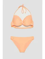 Push-up podprsenka s vyztuženým košíčkem. Vrchní díl plavek v broskvové barvě. Prostý. Ozdobné nabírání vpředu.