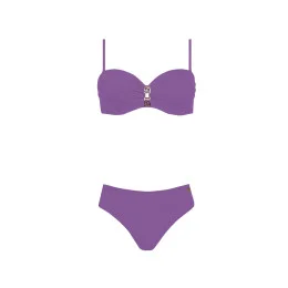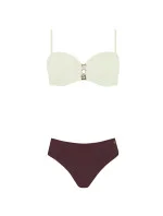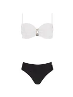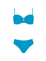 Horní díl dámských plavek, košíčky vyztužené, s kosticí, uprostřed zdobené zlatou sponou. Ramínka na posouvání.