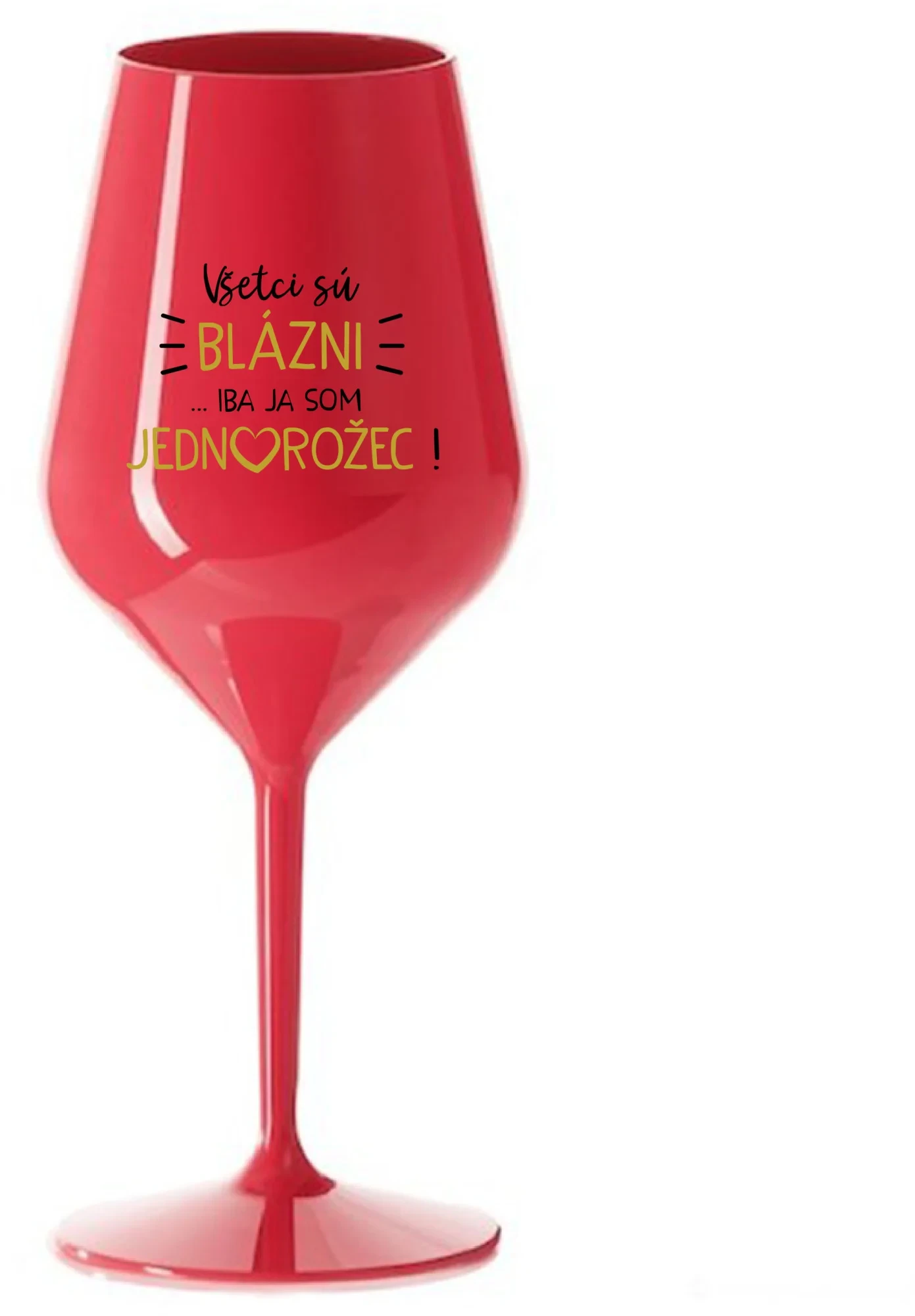 VŠETCI SÚ BLÁZNI...IBA JA SOM JEDNOROŽEC! - červený nerozbitný pohár na víno 470 ml