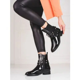 Výborné černé dámské kotníčkové boty na plochém podpatku