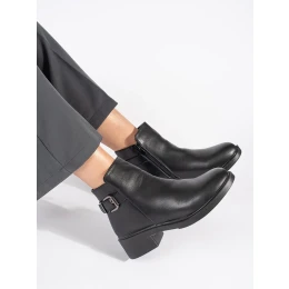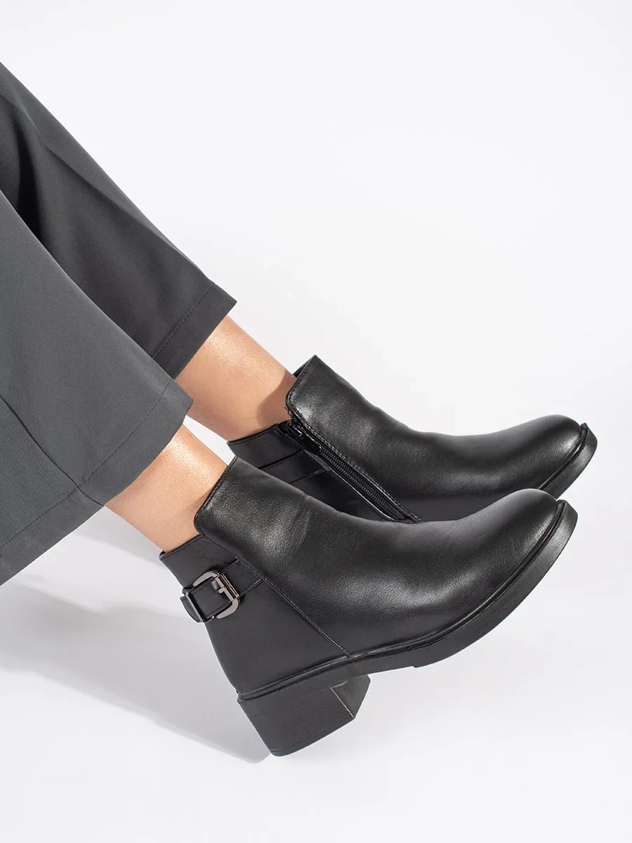 Výborné dámské černé kotníčkové boty na širokém podpatku