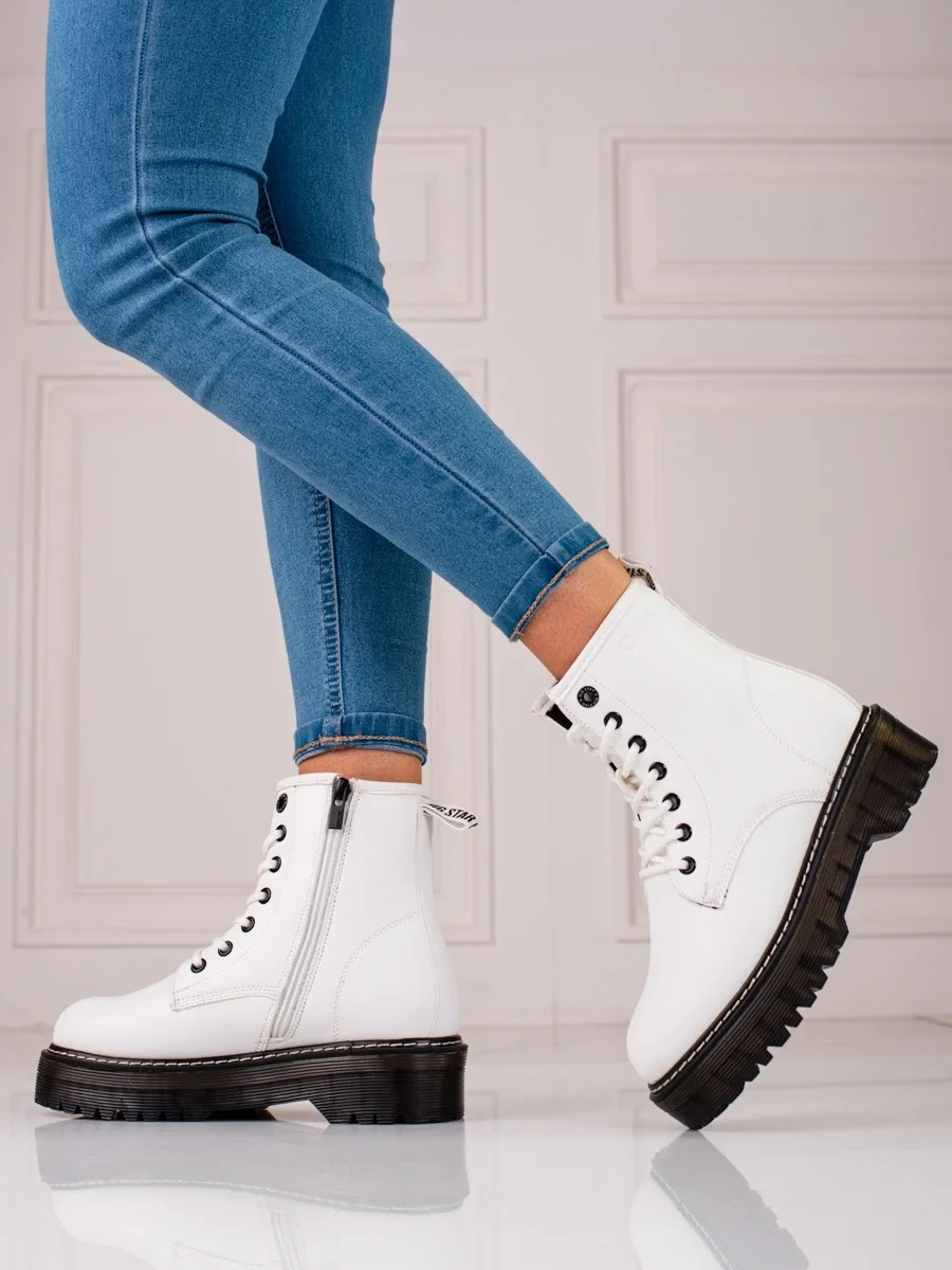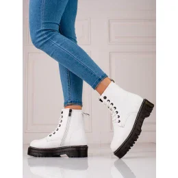 Výborné dámské kotníčkové boty bílé na plochém podpatku