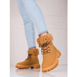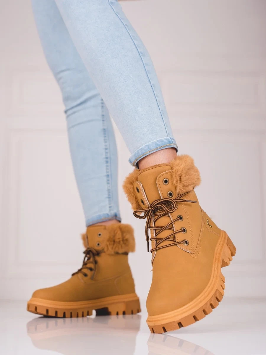 Výborné dámské kotníčkové boty hnědé na plochém podpatku