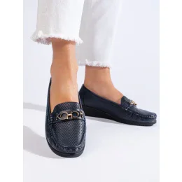 Výborné modré mokasíny dámské na klínku