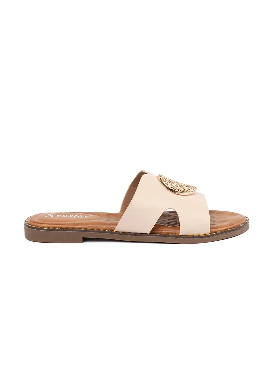 Výborné nazouváky dámské Jasnobeżowy na plochém podpatku