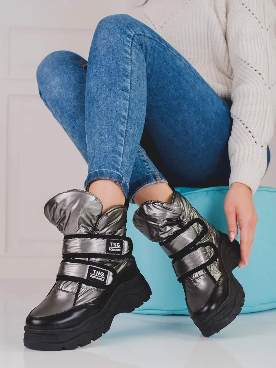 Výborné sněhule šedo-stříbrné dámské bez podpatku