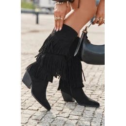 Vyhřívané Kůže Boty Kovbojky Dámské S Fringing Černé Brivina