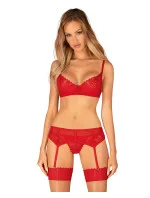 Chcete, aby se na tváři vaší druhé polovičky objevilo nespoutané vzrušení, jakmile se objevíte v této žhavé soupravě? Zamilujte si jedinečný design se zajímavými detaily. Červená barva podprsenky, tang a podvazkového pásu z vás nenechá nikoho spustit oči a vy se budete cítit výjimečně krásná.