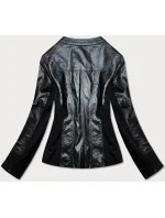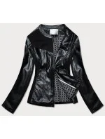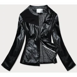 Vypasovaná černá dámská bunda s různých spojených materiálů (752ART)