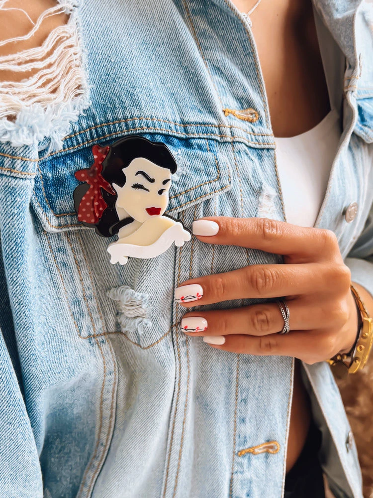 Poutavá brož s ženským motivem bude dokonalým doplňkem k vašemu outfitu a lze ji připnout na košili, sako nebo kalhoty.