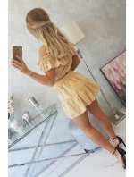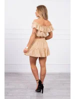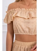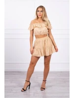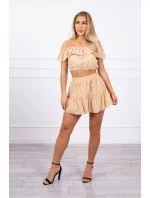 Vyšívaná souprava s puntíkovanou halenkou béžové barvy