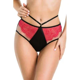 Na bocích modelu je béžová síťovina, na kterou je našitá červená krajka. Zadní díl kalhotek lemuje dvojitý tyl. V pase je černý pásek, jehož délku je možné nastavit.