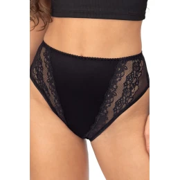 Figi damskie z wiskozy to połączenie elegancji, wygody i kobiecości w najlepszym wydaniu. Wykonane z miękkiego, elastycznego materiału, idealnie dopasowują się do sylwetki, gwarantując pełen komfort noszenia przez cały dzień. Klasyczny, wysoki stan subtelnie modeluje talię, a delikatne, koronkowe boki z kwiatowym motywem dodają im wyjątkowego uroku.Tył majtek został wykończony cienkimi brzegami, co sprawia, że pozostają niewidoczne pod ubraniem i dają uczucie lekkości. Dostępne w dwóch ponadczasowych kolorach – beżowym i czarnym. Pakowane w elegancką, foliową torebeczkę na zatrzask.