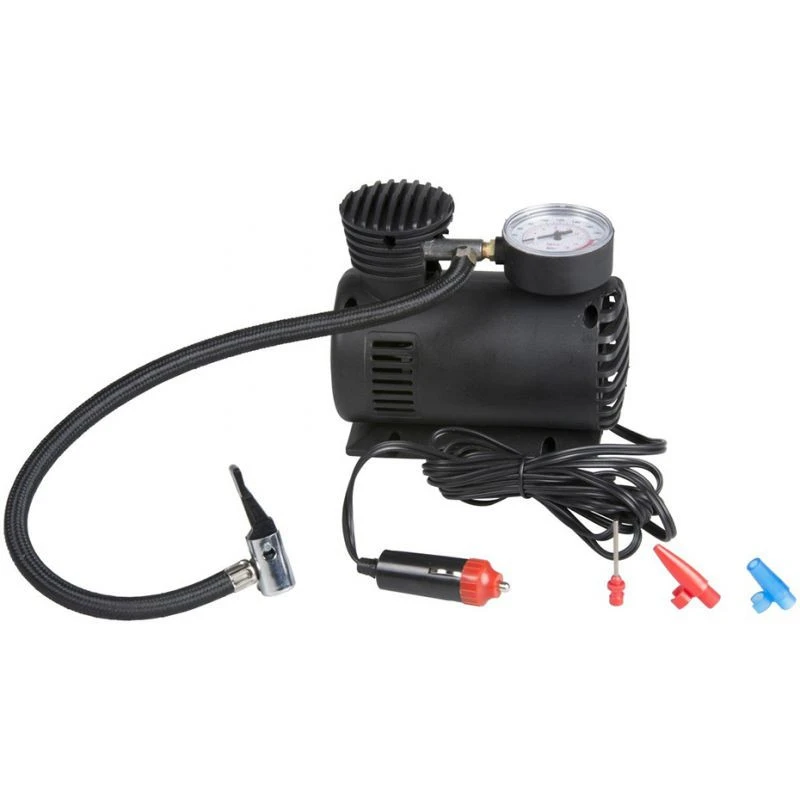 Vzduchový kompresor Dunlop 92429 Vzduchový kompresor Dunlop je spolehlivým společníkem na dlouhé cesty autem a kempování. Připojuje se k zapalovači cigaret v autě. Součástí balení jsou tři trysky. Kompaktní rozměry. Technické údaje:- napětí: 12 V- tlak: 17 barů/250 psi- délka kabelu: 2,85 cm- hmotnost: 583 g.