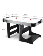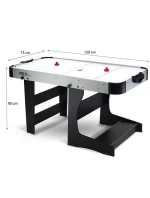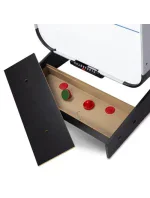 Stůl je vyroben z kvalitní MDF desky, která je odolná proti oděru, což se projevuje dlouhou životností. Hrací plocha je vybavena speciálními vzduchovými otvory, které usnadňují pohyb puku a činí hru dynamičtější. Pod stolem je instalována účinná baterie.