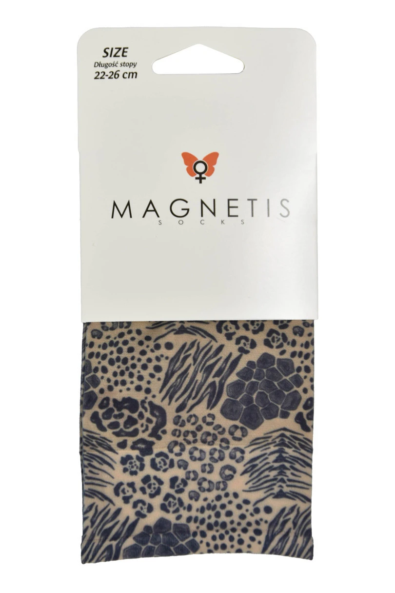 Dodaj odrobinę charakteru do swojej stylizacji dzięki wzorzystym skarpetkom Magnetis WZR 298. Delikatne i subtelne, wykonane z lekkiego materiału o grubości 15 DEN, stanowią idealny dodatek zarówno do eleganckich butów, jak i bardziej casualowych zestawów. Nowoczesny wzór sprawia, że skarpetki prezentują się wyjątkowo stylowo, a jednocześnie pozostają wygodne i praktyczne.Elastyczna przędza (poliamid z dodatkiem elastanu) gwarantuje doskonałe dopasowanie do stopy i komfort noszenia przez cały dzień. To must-have w garderobie każdej kobiety, która ceni sobie detale podkreślające indywidualny styl.