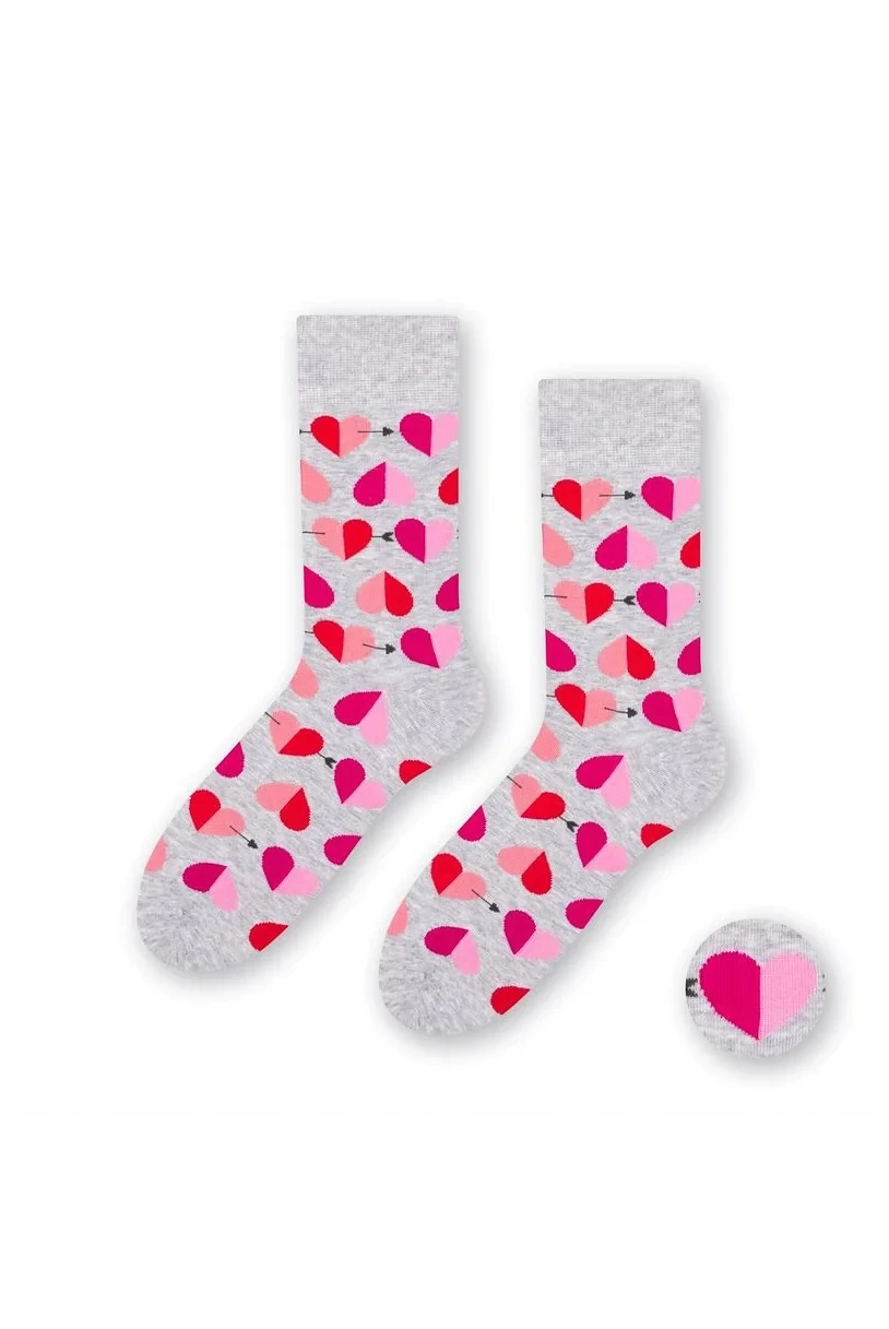 Bavlněné pánské ponožky, které jsou ozdobené vzory s valentýnskou tematikou.