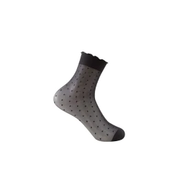 Dodejte šarm každému outfitu s jemnými vzorovanými dámskými ponožkami SKP 003 od Be Snazzy. 20denní průhledný materiál zdobený jemným vzorem s puntíky dělá ponožky mimořádně lehké a ženské. Elastický lem s jemným zvlněním poskytuje pohodlí a elegantní vzhled. Skvěle se hodí k balerínám, lodičkám nebo i teniskám– stylový detail, který upoutá pozornost. Sada obsahuje 2 páry, které kombinují módu s pohodlím.