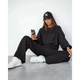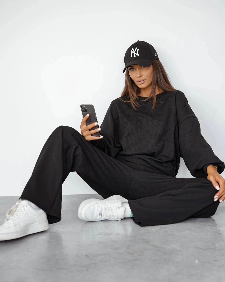 Černý dámský komplet s vaflovou strukturou - mikina a kalhoty (821108)