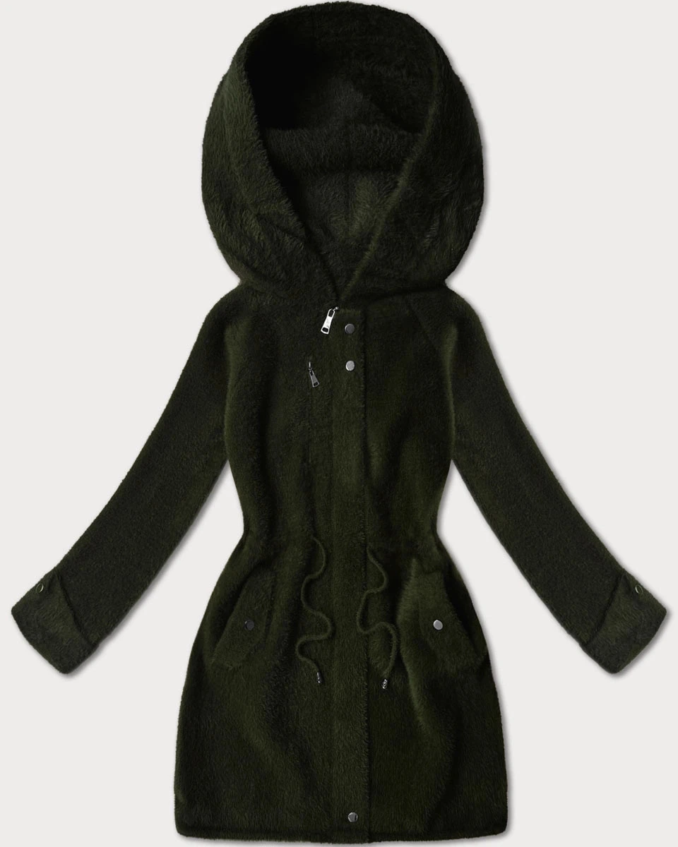 Vlněná bunda typu alpaka v army barvě s kapucí (W214#)