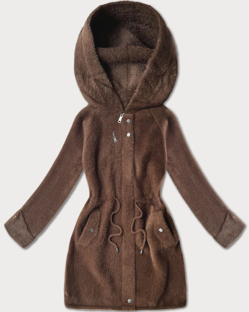 Hnědá vlněná bunda typu alpaka s kapucí (W214#)