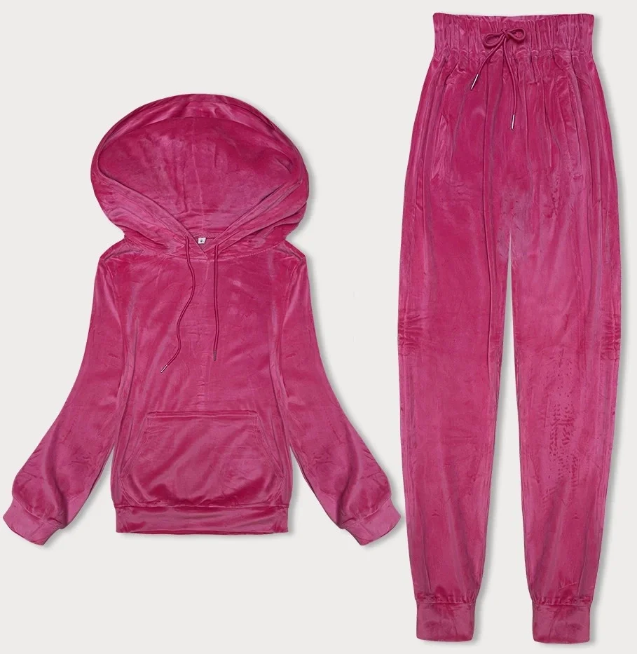 Tmavě růžová dámská velurová souprava s kapucí (8C1175-19)