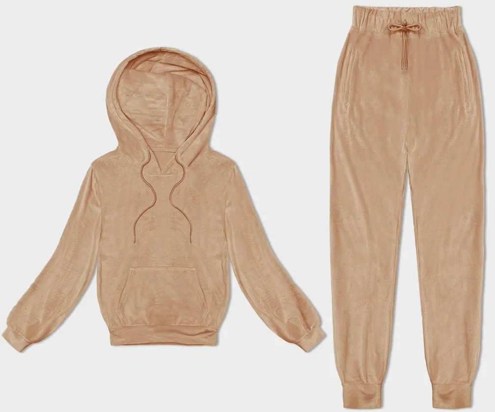 Dámská velurová souprava v barvě nude s kapucí (8C1175-160)
